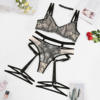 What sets this lingerie set apart is its meticulous design and attention to detail. The combination of a neck strap, bra, panties, garter, and thigh bands creates a stunning ensemble that exudes confidence and sophistication. The transparent, ultra-thin fabric with floral lace is both alluring and tasteful, making this set a must-have addition to your intimate wardrobe.