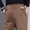 Available in classic brown and black, these trousers feature a tapered fit that complements a variety of body types. The midweight fabric ensures you stay comfortable in both spring and autumn, making these pants a versatile addition to your wardrobe. The elastic waist offers a snug fit without sacrificing comfort, allowing you to move freely throughout your day.