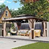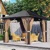 This Outdoor Hardtop Gazebo stands out with its combination of functionality and style. The double roof design not only provides excellent ventilation but also adds a unique aesthetic to your outdoor space. The sturdy aluminum frame ensures that this gazebo will be a part of your outdoor life for years to come. Whether you’re looking to host a summer party, create a serene outdoor retreat, or add a touch of elegance to your garden, this gazebo is the ideal choice.