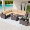 Elevate your outdoor living experience with this stunning 7-piece Wicker Sectional Sofa Set, designed to blend seamlessly with any outdoor decor. Whether you’re hosting a lively gathering or enjoying a quiet evening under the stars, this versatile set offers the perfect combination of style, comfort, and durability. With its sleek, modern design and high-quality materials, it’s the ideal addition to your patio, garden, poolside, or balcony.