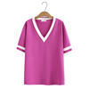 Plus Size Women T-Shirt 2023 Summer Short Sleeve Block Color Ice Knitted Tops Loose Tees Oversized Curve Clothes F5-5021