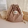 Our diaper bag comes in a Large Size to suit your needs: 27 x 25 inches, features a brushed texture for a soft and comfortable feel, complemented by a lace drawstring. It is crafted from high-quality cotton fabric, ensuring durability and a gentle touch against your skin. The drawstring closure allows for easy access and secure storage, keeping your items organized and within reach.