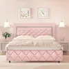Transform your bedroom into a chic, luxurious haven with this stunning Queen Bed Frame featuring a beautifully designed diamond tufted headboard. Upholstered in soft pink faux leather, this bed exudes sophistication while offering the ultimate comfort and support. Whether you’re redecorating your master suite or outfitting a guest room, this frame blends seamlessly into any modern bedroom style, making it the perfect choice for anyone looking to add a touch of elegance to their space.