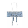 Get ready to turn heads and make a bold statement with this stunning Shirred Denim Bandeau Top, designed to accentuate your unique style at any music festival, rave, or summer event. This backless halter top is crafted to perfection with a vintage touch and modern edge. Featuring a charming bowtie at the front and a striking metal chain at the back, this extra-short bandeau top brings a touch of rebellious flair to your outfit. The shirred detail hugs your curves just right while the structured denim fabric ensures you stay comfortable all day long.