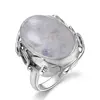 S925 Sterling Silver Ring Natural Lapis Lazuli White Chalcedony Moonstone Ring Large Stone 11x17MM Oval Jewelry for Women