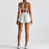 Crafted from high-quality nylon and spandex, our workout set offers an exceptional blend of durability and flexibility. The set includes a supportive sports bra and high-waisted scrunch shorts, designed to flatter your figure and enhance your performance.