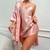 Elevate your bedtime routine with the ultimate in comfort and style with our Silk Satin Women’s Nightgown Set. This 2-piece set includes a sleeveless V-neck dress and a quarter-sleeve robe with a waist belt, giving you a perfect combination of elegance and ease. Designed with a silky smooth finish, this set wraps your body in breathable luxury, ensuring you feel as good as you look.
