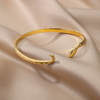 This trendy bangle is made from high-quality stainless steel, ensuring durability and longevity. The gold plating adds a luxurious touch, while the snake pattern offers a unique and captivating aesthetic. Designed to be compatible with all styles, this bracelet complements any outfit, from casual to formal.