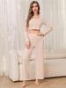 Made with a soft blend of 60% polyester, 35% viscose, and 5% elastane, the fabric is smooth, delicate, and gentle on the skin. The knit texture adds a touch of sophistication, while the elasticated waistband on the full-length pants ensures a snug and comfortable fit. Ideal for all seasons, this pajama set is perfect for relaxing at home, pajama parties, or any casual lounging occasion. It’s not just sleepwear—it’s your new go-to for ultimate comfort and style.