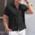 - Design: Short sleeves, turn-down collar, single-breasted closure, and vintage patches for a unique look.