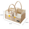 The whimsical bear cartoon design adds a playful touch to your nursery decor. With neutral colors and a timeless aesthetic, this diaper caddy is perfect for both boys and girls and seamlessly blends with any nursery theme. Crafted with love and attention to detail, it is sturdy and spacious, providing ample room for all your diapering needs. The durable and stylish felt material fits perfectly in any environment, making it a versatile addition to your baby essentials.