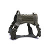What sets this harness apart is its versatile Molle system on the backside. This allows you to attach various small equipment, pouches, water bottles, or snacks, making it ideal for training, hiking, or any outdoor activity. The top of the harness is equipped with a metal V-shaped buckle, providing a secure attachment point for a leash, ensuring your dog stays close and under control.