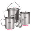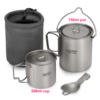 - Full Titanium Set: Includes a 750ml pot, a 450ml cup, a 300ml cup, and two folding sporks, perfect for all your outdoor adventures.