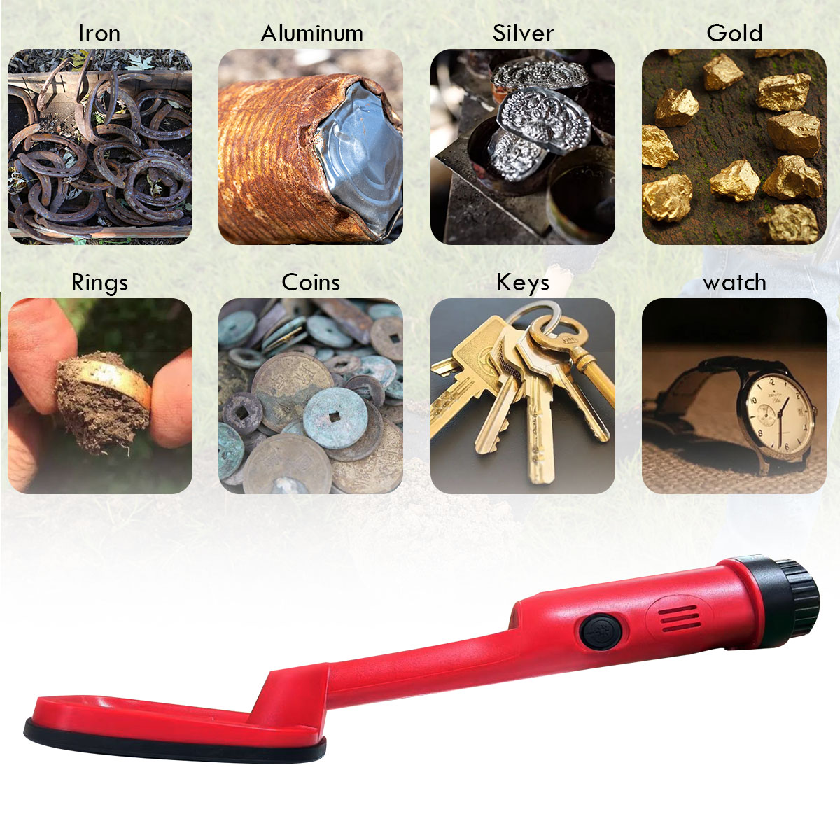 - Audio and Vibration Alarms: Alerts you to the presence of metal objects.