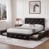 Don’t miss out on the perfect blend of modern style and practical storage. Transform your bedroom into a peaceful, organized space with this Upholstered Bed Frame with Storage Drawers. Click “Add to Cart” now to bring comfort, convenience, and style to your home!