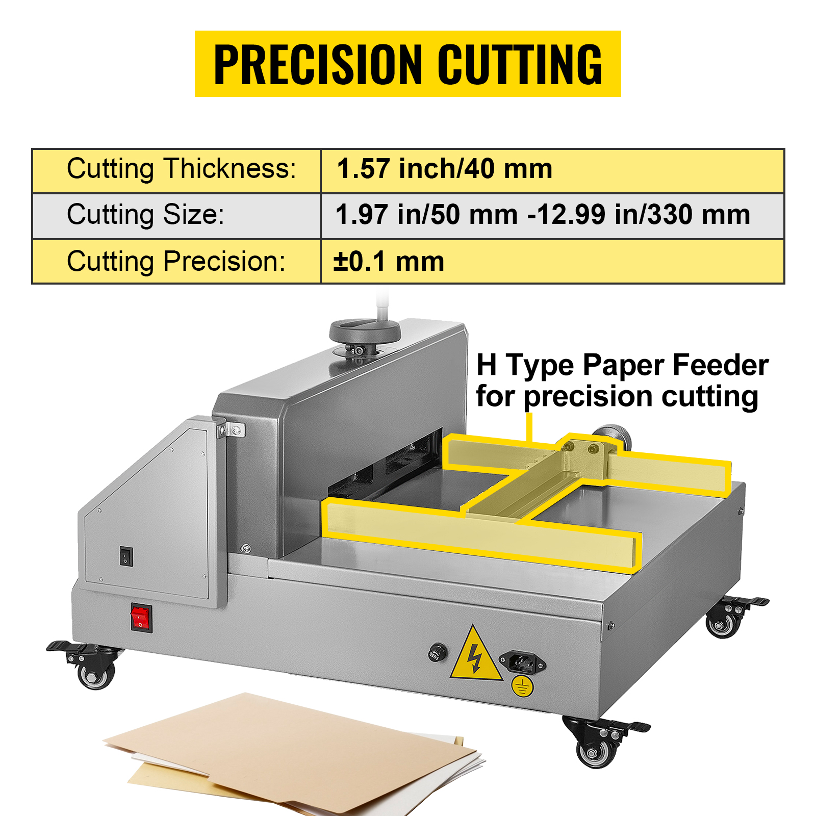 - Precision Cutting: The H-type paper feeder and precision scale allow for exact adjustments, ensuring accurate cuts down to ±0.004 inches, every time.
