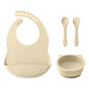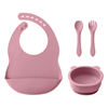 - 4-in-1 Feeding Set: Includes suction bowl, plate, spoon, fork, and waterproof bib
