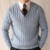 Stay Warm and Stylish with Our Men’s Winter V-Neck Striped Knit Sweater