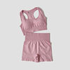Designed with versatility in mind, this yoga set is perfect for a variety of fitness activities. Whether you’re practicing yoga, running, or hitting the gym, our seamless set provides the support and flexibility you need. The high-waisted shorts offer tummy control and a sleek look, while the sports bra ensures ample support without compromising on style.