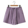 The non-stretch twill fabric is durable and maintains its shape, offering a polished look even after multiple washes. The solid purple color is versatile and easy to pair with any top, from casual t-shirts to chic blouses. The decorative pockets add a touch of practicality and style, making these shorts a fashionable yet functional choice.