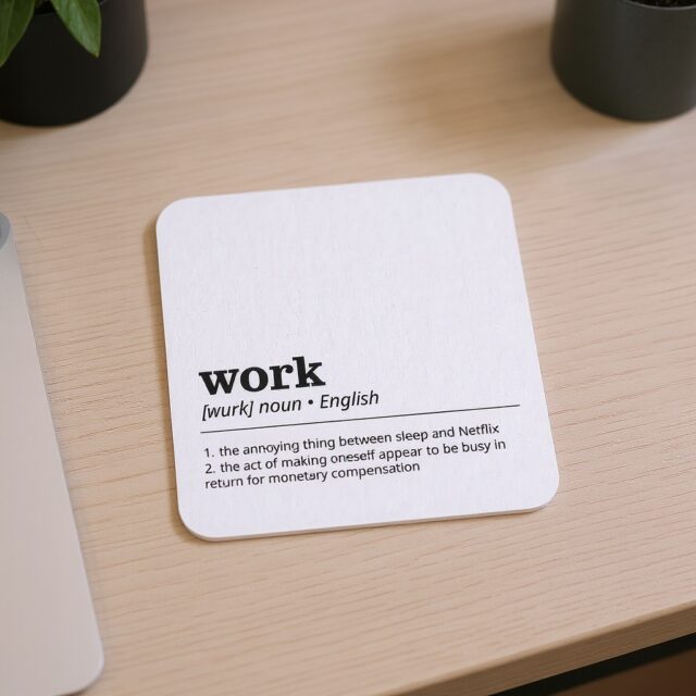 While most coasters simply blend into the background, the Work Noun Hardboard Coasters bring a clever design that sparks smiles and conversations. They combine durability, practicality, and a playful edge—making them a step above the ordinary.