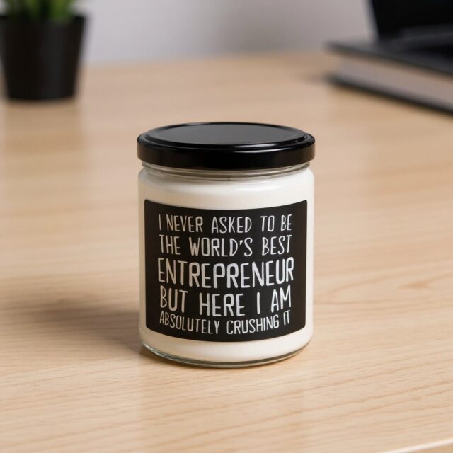 Every entrepreneur deserves recognition—and every workspace deserves a little warmth. With the World’s Best Entrepreneur Scented Soy Candle, you’ll enjoy a lasting flame that keeps the motivation alive. Don’t just work hard—create an atmosphere that fuels your ambition. Add this candle to your cart today and let success shine brighter.